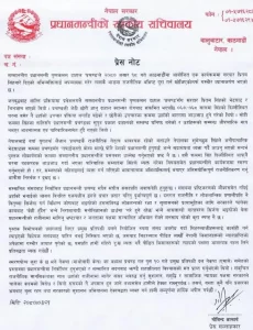 काठमाडौं । प्रधानमन्त्री पुष्पकमल दाहाललाई आफ्नो अभिव्यक्तिबारे संसद्मा बोल्ने मौकासमेत नदिई एकपक्षीय रूपमा प्रचारप्रसार गरिएको भन्दै प्रधानमन्त्रीको स्वकीय सचिवालयले आपत्ति जनाएको छ ।