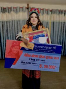 काठमाडौं । स्वर्गीय गायिका योगिता मोक्तानको सम्झनामा ‘योगिता मोक्तान प्रतिभा पुरस्कार २०८०’ गायिका जितु लोप्चनलाई प्रदान गरेका छन् । सोमबार नेपाल तामाङ कलाकार सघंद्वारा आयोजित स्मृति सभामा गायिका लोप्चनलाई सो पुरस्कार प्रदान गरेका हुन् । सघंले नगद पुरस्कार २० हजार रुपैयाँसहित उनलाई सम्मान गरेका हुन् ।