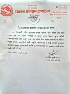 काभ्रे। जिल्ला प्रशासन कार्यालय काभ्रेले निषेधाज्ञा र कर्फ्यू आदेश रद्द गरेको छ ।