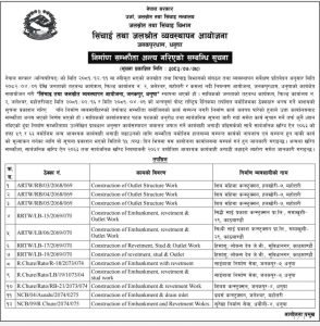 सिँचाइ तथा जलस्रोत व्यवस्थापन आयोजना, जनकपुरधामले आइतबार सार्वजनिक सूचनामार्फत १६ जेठ २०८१ र १ साउन २०८१मा ठेक्का अन्त्य गर्ने आशयको सूचना दिइए पनि निर्माण व्यवसायीबाट सम्झौता बमोजिम काम सम्पन्न नगरी निर्माण अलपत्र पारेकाले ठेक्का अन्त्य गरिएको जनाएको छ ।