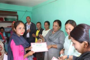 तालिम समापन कार्यक्रममा प्रमुख अतिथि पनौती नगरपालिका उप प्रमुख गीता बन्जराले सिकेका सीपले महिलालाई आत्मनिर्भर बनाउने र सीपको प्रयोग गरि स्वरोजगारमा लाग्न आग्रह गरिन ।