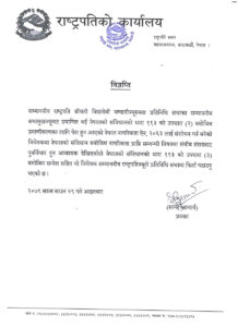 राष्ट्रपति कार्यालयका प्रवक्ता सागर आचार्यले विज्ञप्ती जारी गरेर संघीय संसदबाट विधेयक पुनर्विचार हुन आवश्यक देखिएकोले नेपालको संविधानको धारा ११३ को उपधारा ३ आनुसार विधेयक प्रतिनिधिसभामा फिर्ता पठाइएको जनाएका हुन् ।