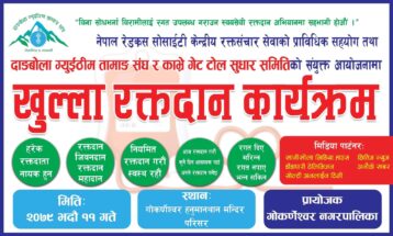 काठमाडौं । बुबाको मुख हेर्ने दिनको अवसर पारेर गोकर्णेश्वरस्थीत हनुमान मन्दिर परिसरमा खुल्ला रक्तदान कार्यक्रम हुने भएको छ । नगरपालिकाको प्रायोजनमा सम्पन्न हुने कार्यक्रम आगामी भदौं ११ गते शनिबार हुने भएको हो ।