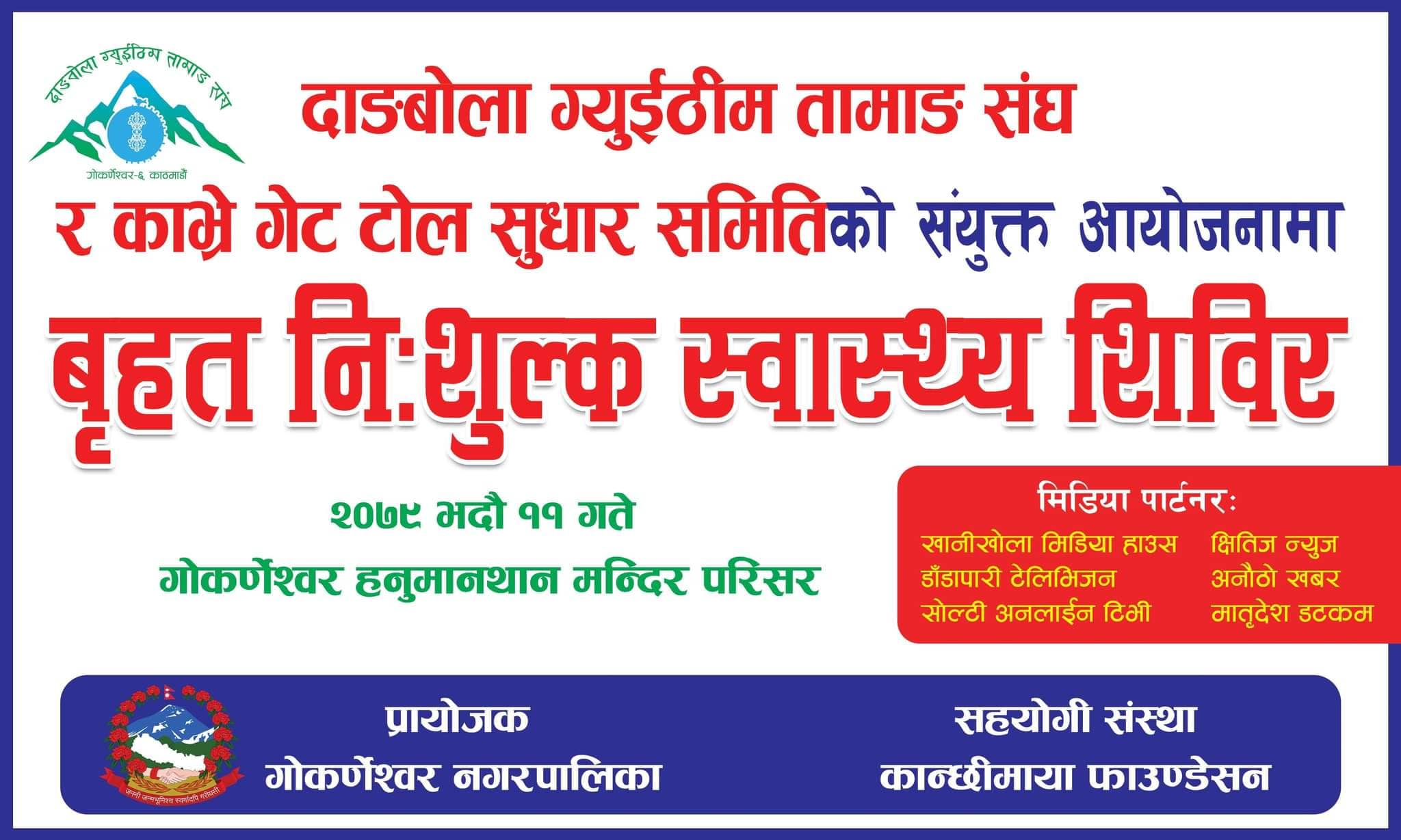 यस्तै, सोही दिन नगरपालिकाको प्रायोजन र कान्छीमाया फाउण्डेसनको सहयोगमा बृहत नि ः शुल्क स्वास्थ्य शिविर पनि आयोजना गरिएको छ । केही हप्ता यता कोभिड संक्रमण बढ्दै गईरहेकाले नगरवासीको स्वास्थ्यलाई मध्य नजर गर्दै स्वास्थ्य शिविर संचालन गरिएको आयोजकले जनाएको छ ।