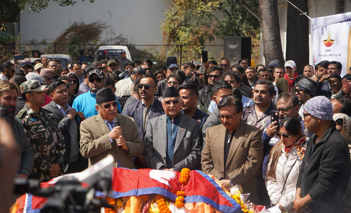 भक्तराज आचार्यलाई प्रचण्ड र ओलीले दिए श्रद्धाञ्जली, राष्ट्रिय झण्डा ओढाइयो