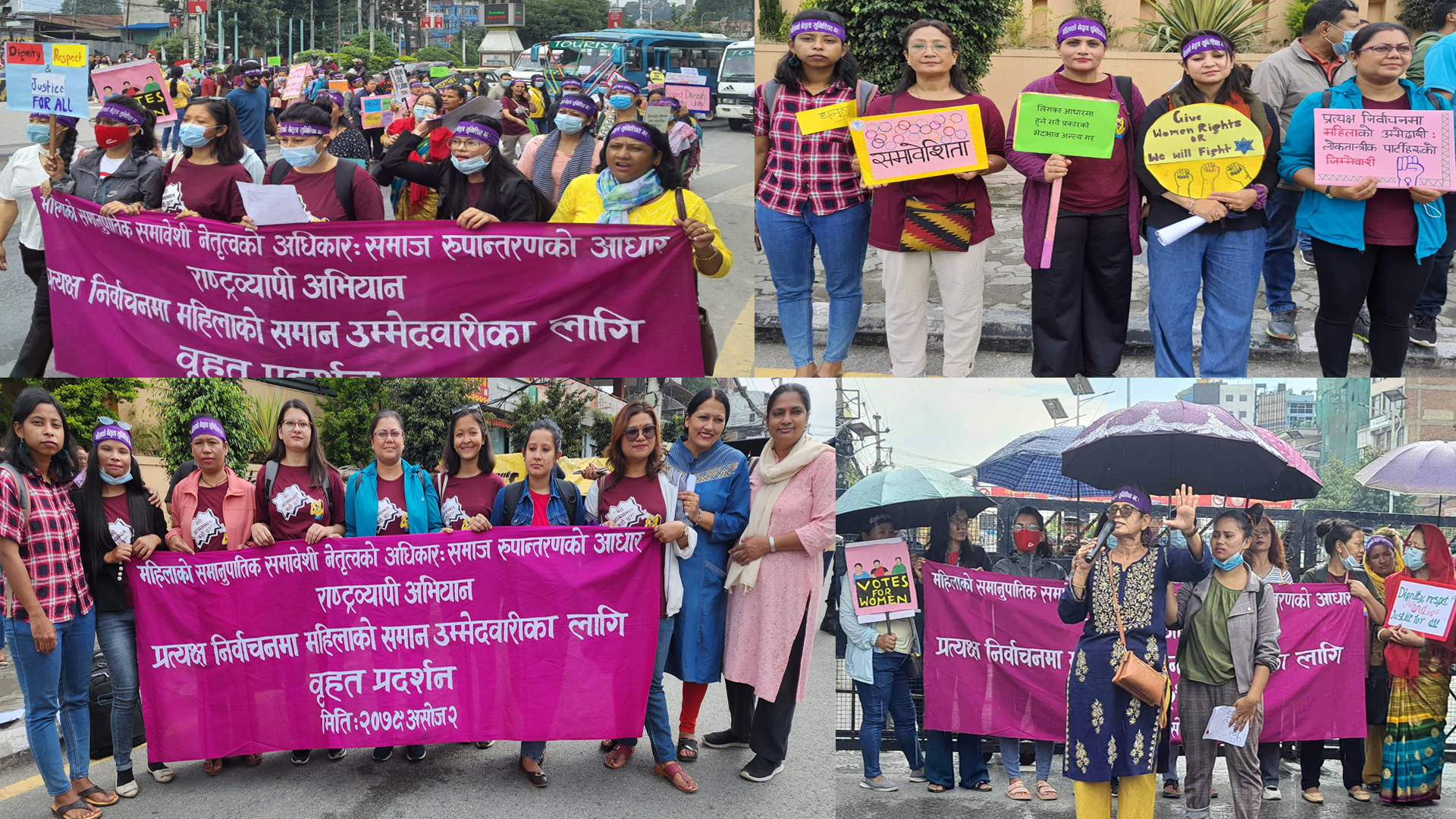 निर्वाचनमा महिलाको समानुपातिक समावेशी सुनिश्चितताको माग गर्दै अधिकारकर्मीद्धारा प्रदर्शन