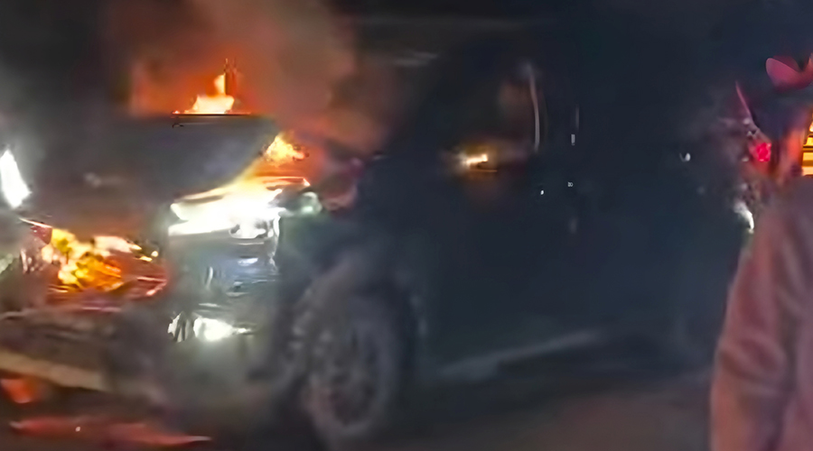 जिपसँग ठोक्किएपछि भारतीय नम्बरको कारमा आगलागी