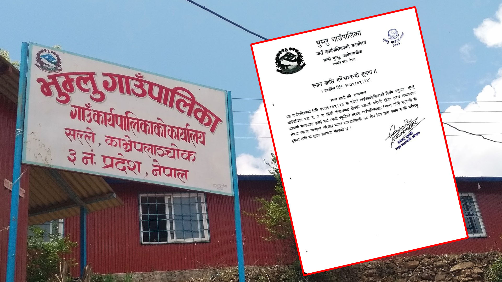 दोलालघाट बसपार्क क्षेत्रमा रहेको टहार लगायत अस्थायी संरचनाहरु हटाउन ३५ दिने सुचना
